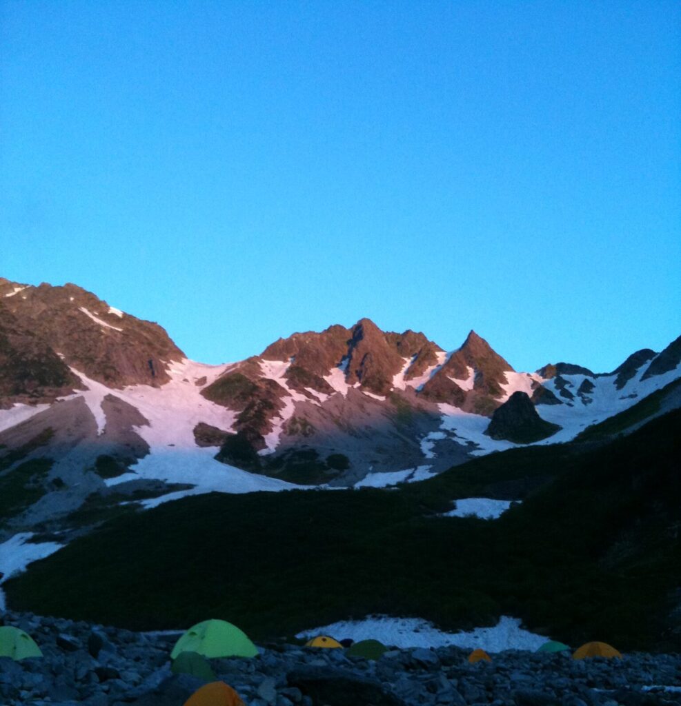 テント泊の場合は予約不要の場合もありますが、混雑日は良い場所を確保するために早出が必要です。上高地からの入山は早朝がベスト。
